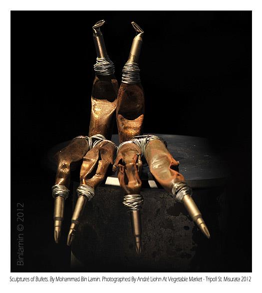 Some of the highlights were Mohammad Bin Lamin's sculptures that were made from recycled war materials like metal bullets, Matug Aborawai's incredible paintings and sketches of drowning immigrants on their way to Europe, Hadia Gana's ‘Zarda’ installation piece and Naziha Arebi's photographs that offered an unusual glimpse into the private celebrations of Libyan women. The other two artists were Yousef Fetis and Arwa Abouon.